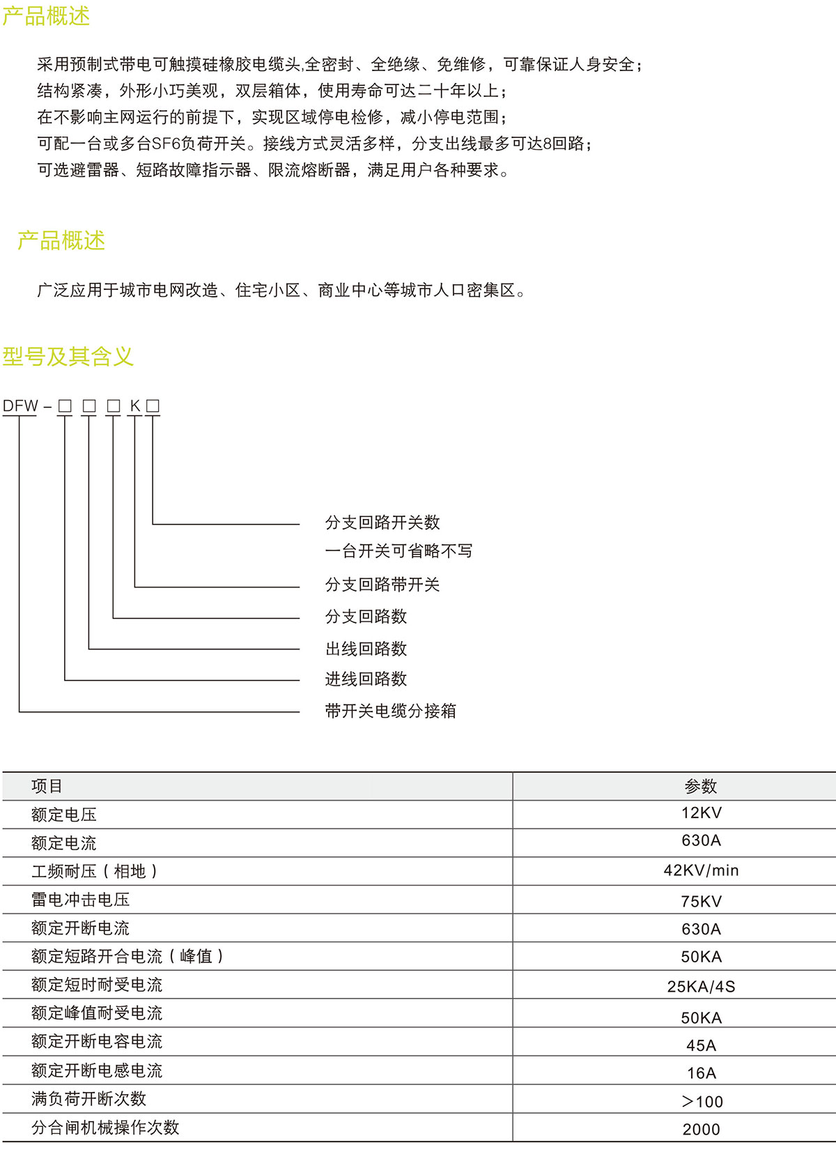 DFW系列帶開關電纜分支箱